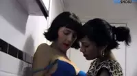 The video starts with these two beautiful brunettes, wearing their casual but incredibly sexy outfits, walking towards the bathroom with a sense of anticipation and excitement in their eyes.As they enter the bathroom, the steamy atmosphere surrounds them, setting the tone for what is about to be an unforgettable sensual encounter.The brunette girls don't waste time and quickly proceed to strip each other down, revealing their supple, smooth skin which only adds to the intensity of this erotic scene.With their bodies now exposed, the lesbian duo eagerly moves towards the bathroom sink.One girl stands behind the other, bending her over the edge of the sink and spreading her ass wide open, making room for the pleasure that's about to follow.The brunette standing behind starts to tease her lover, lightly stroking and kissing her tiny, yet extremely sensitive asshole.Meanwhile, the girl being pleasured moans in delight as she clenches onto every single touch with an overwhelming feeling of horniness.As their intimacy grows more intense, one of the brunette girls can't help herself any longer.She bends down and starts licking her lover's plump labia with a passionate hunger for taste and connection.The brunette receiving this erotic act smiles in appreciation while gripping onto the sink with both hands.Soon enough, the brunette giving pleasure finds herself overwhelmed by her lover's passion, which makes her turn around so they can share their pleasure in a more intimate way.Their tongues now intertwine as they share an unforgettable kiss that lasts for what feels like an eternity of ecstasy.As the passionate kiss fades, the brunette on top decides to indulge her lover even further by teasing her swollen clit with her fingers.The sensation only grows stronger and more pleasurable for both women, as they start moaning louder in harmony while their bodies sway together.As the erotic energy between them builds up, they're getting closer and closer to climaxing together.The tension is almost unbearable, but not for long, as a powerful orgasm takes over one of the women, making her body shake and moan with unparalleled intensity.This pushes her lover over the edge as well, triggering another earth-shattering climax that sends shivers down their spines and makes them feel connected on a whole new level.When it's all over, the brunette lesbian duo shares a satisfied smile that can only be described as pure bliss.The intimacy of this scene is not just about the erotic acts they perform on one another but also about their mutual trust and appreciation for each other's body and desires.This bathroom encounter will undoubtedly remain etched in their memories forever, with a taste and warmth that lingers in their hearts and minds for a long time to come.
