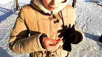 Totally Crazy Girl Performs Outdoor Blowjob, Swallows and Smiles The video starts with an unforgettable scene of the wild girl outside in the freezing cold winter weather, exposing her irresistible body.Despite the harsh conditions, shes eager to please this tall man, offering him a blowjob right there under the open sky.Her lips wrapped around his erection, the guy groans with pleasure as she sucks and teases his dick, going deeper than ever before.The womans eyes are filled with desire, and her passion for sex is apparent in the way she looks at him.The cold doesnt stop them from indulging their lust this couple has found a unique thrill in outdoor fucking.Her lips are moist as she swallows every inch of his dick, using her tongue to send shivers down his spine and making his cock throb with anticipation.As the snow gently falls around them, their skin glistens under the winters icy touch a sharp contrast to the heat simmering within them.Her smile is infectious its as if she knows that this cold outdoor adventure would leave them both warmed up in an entirely different way.With the mans sperm oozing down her throat, she catches every drop, swallowing each burst of semen with a smirk on her cute lips.The couple shares an intimate moment amidst natures beauty, as they engage in a sensual act that brings them closer.Their bodies glisten with a mixture of sweat and winter chill a sight so hot that it makes the viewer crave for more.Its not just about fucking its about overcoming boundaries and relishing every ounce of passion that mother nature has to offer in this Totally Crazy Girl Performs Outdoor Blowjob, Swallows and Smiles video.